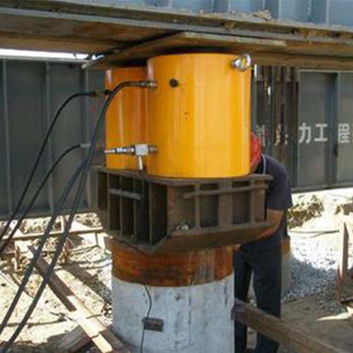 頂管機在液壓千斤頂助力下頂進時停止挖土,傳力柱上和兩
